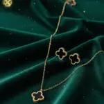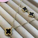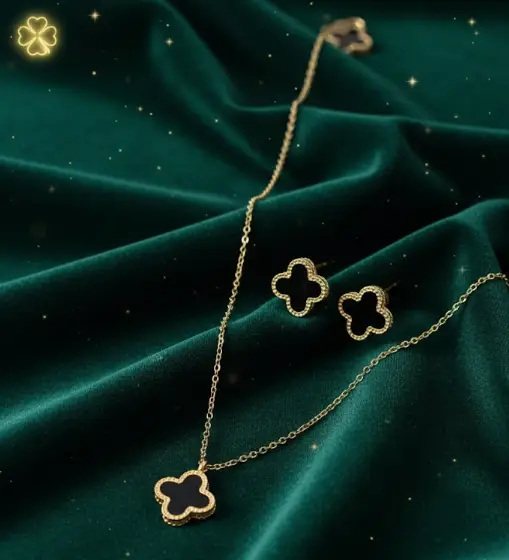 Lucky Four-Leaf Gold Clover Necklace and Earrings Set