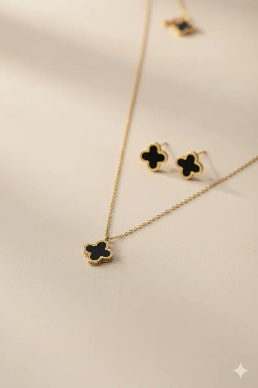 - Complete Set: Includes 1 gold-tone clover necklace and 1 pair of matching clover stud earrings.